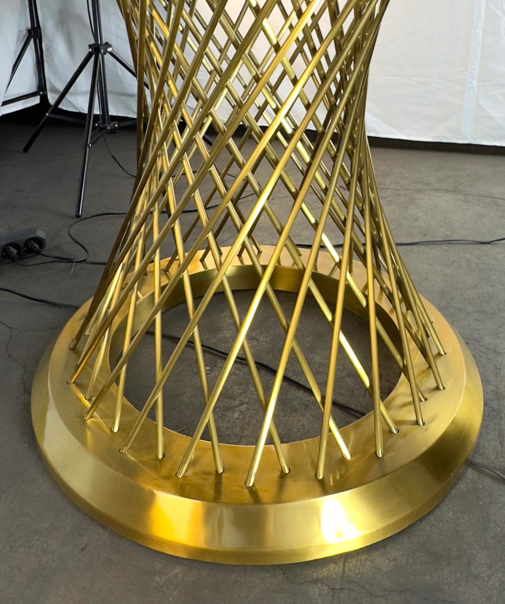 Подстолье металлическое (нержавеющая сталь), цвет "под золото" (нитрид титана) 2141EM Лаковое покрытие. Диаметр основания - 65 см. Подстолье поставляется в трёх вариантах размеров (варьируется диаметр верхней части, и, соответственно, рекомендованный размер столешницы): 2141EM (2141EM, D800) - D*800 В*710, вес 14 кг., рекомендована столешница D1200 мм. 2143EM (2141EM, D100) - D*1000 В*710, вес 15 кг., рекомендована столешница D1400 мм. 2150EM (2141EM, D120)- D*1200 В*710, вес 15,8 кг., рекомендована столешница D1600 мм. Заказать подстолье для своего проекта в городе Волгограде, вы можете связавшись с нами любым удобным для вас способом - по телефону, по электронной почте или заполнив форму обратной связи на нашем сайте.