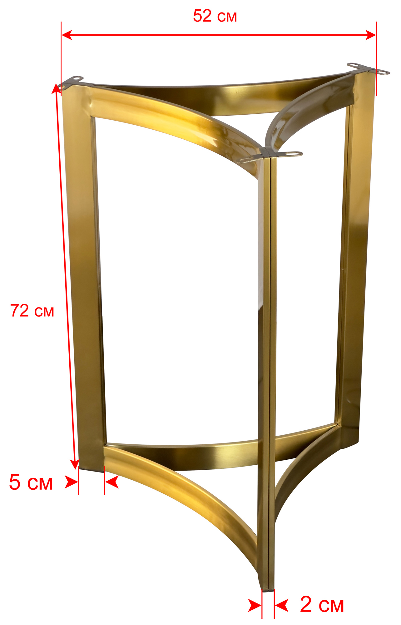 Идеально подходит для заведений с высокой проходимостью. Треугольная конструкция из нержавеющей стали с золотым покрытием (нитрид титана, сторона 52 см) обеспечивает надежную поддержку столешницам Ø60 см. Прочное лаковое покрытие устойчиво к повреждениям и сохраняет роскошный вид при ежедневном использовании.