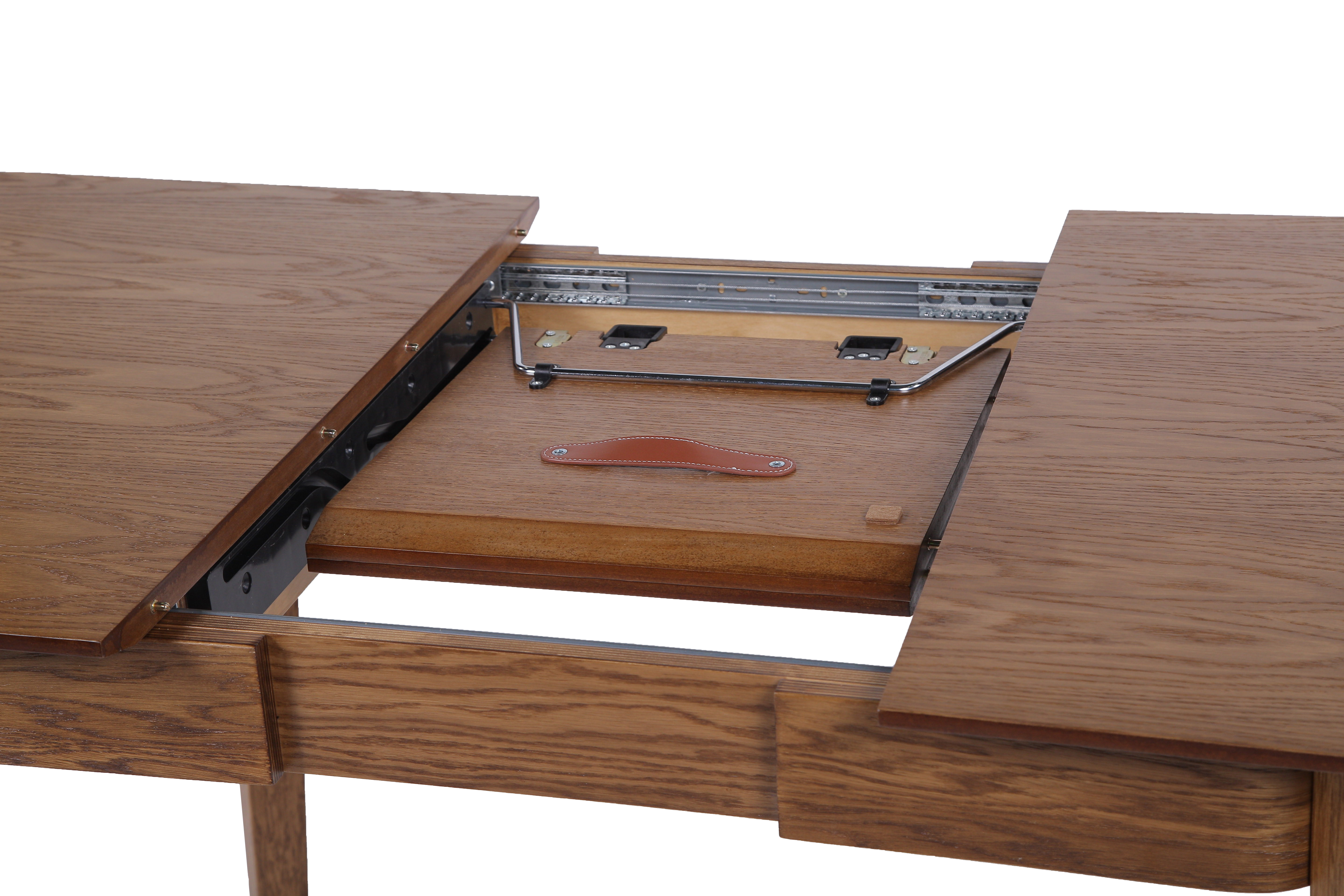 Удобный трансформируемый механизм позволяет быстро увеличить площадь столешницы, адаптируясь под любое количество гостей. Изготовлен из массива дерева с прочным износостойким покрытием, устойчивым к ежедневным нагрузкам.